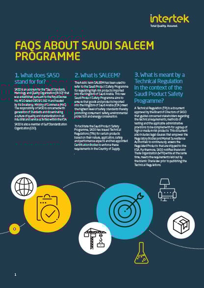 Intertek is designated by the Saudi Standards, Metrology and Quality Organization (SASO) as an authorized Inspection Body to conduct inspections and issue SABER Certificates of Inspection (CoIs) for Used Motor Vehicles being imported into the Kingdom of Saudi Arabia.
